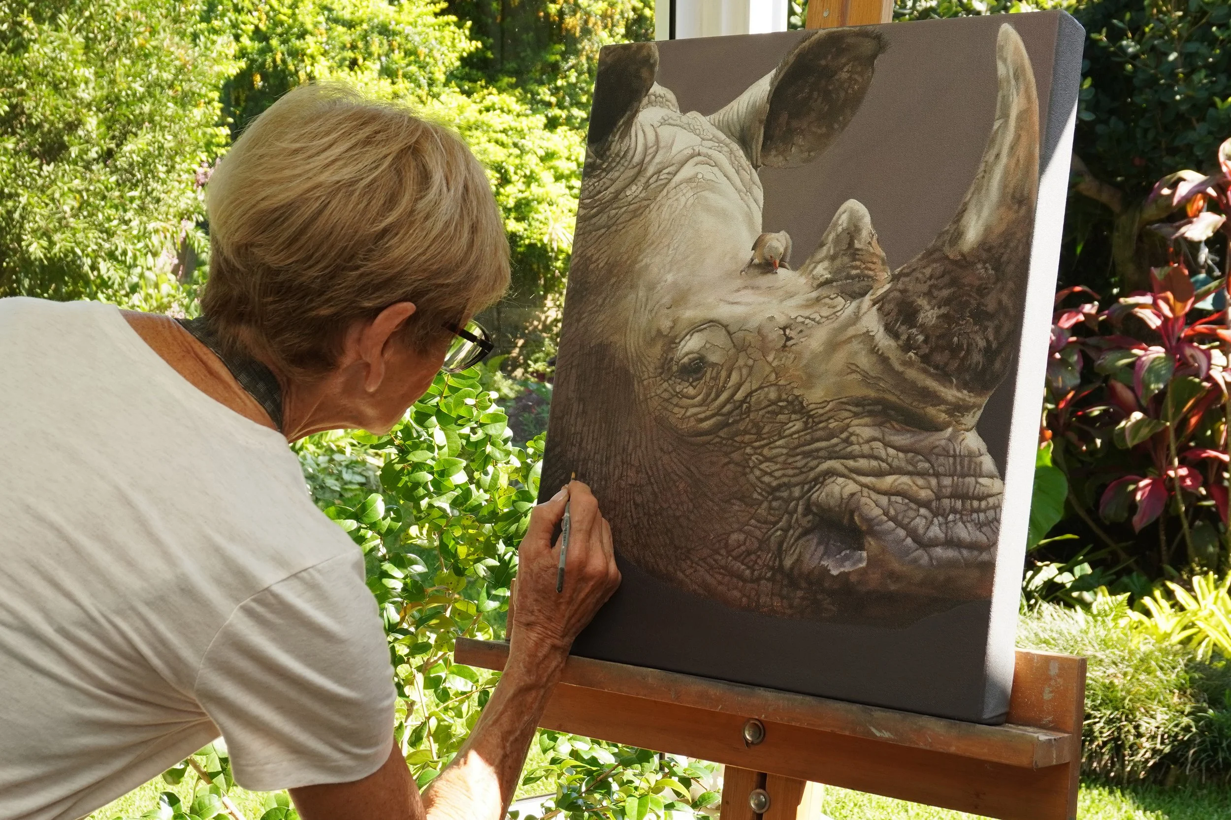 Despite her international success, Linda has always been rooted in Zimbabwe. She has recently returned for a residence at Nantwich Lodge in Hwange, continuing to paint from her studio while taking regular field trips into the bush for inspiration. Her work reflects a deep respect for wildlife and a desire to preserve Africa’s most powerful yet vulnerable species